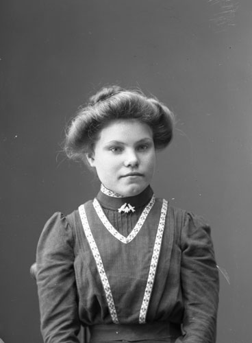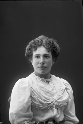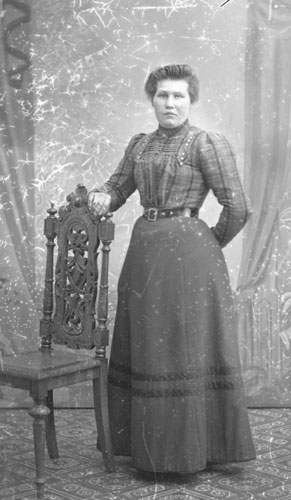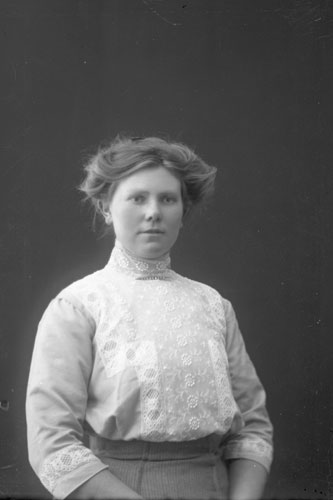 Sökord: Motivkategori:porträtt, kvinna Id:11663 Fotograf: Erika Nordin Fotoår: okänt Bildnummer: en-ac-168 Förening: Enångers hembygdsförening Land: se Motivplats: Gävleborg, Enånger Teknik: inskannad glasplåt 9x12 Rättighet: Enångers hembygdsförening Originalplats: (visas ej publikt)
