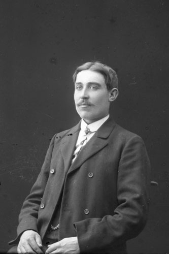 Sökord: Motivkategori:porträtt, man Id:12010 Fotograf: Erika Nordin Fotoår: omkring 1910? Bildnummer: en-ad-256 Förening: Enångers hembygdsförening Land: se Motivplats: Gävleborg, Enånger Teknik: inskannad glasplåt 9x12 Rättighet: Enångers hembygdsförening Originalplats: (visas ej publikt)