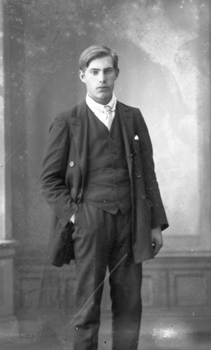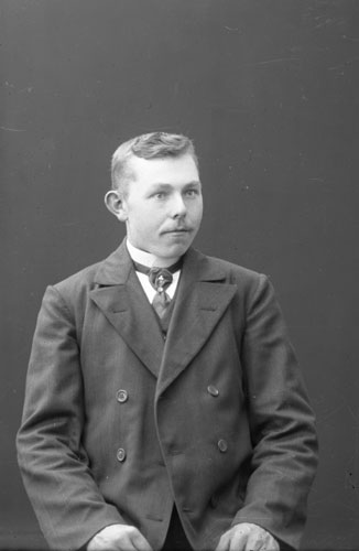 Sökord: Motivkategori:porträtt, man Id:12144 Fotograf: Erika Nordin Fotoår: omkr 1930? Bildnummer: en-ae-148 Förening: Enångers hembygdsförening Land: se Motivplats: Gävleborg, Enånger Teknik: inskannad glasplåt 9x12 Rättighet: Enångers hembygdsförening Originalplats: (visas ej publikt)