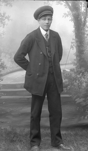 Bildtext: Emil, tvillingbror till Arvid Enström, födda 1907. Båda fiskare på Bergön. Emil avled i unga år. Inkommen bildsynpunkt kompletterar: Emil Enström 1907.07.31-1929.11.05