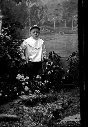 Bildtext: Utanför Sundins: Maja Sundin & möjligen Veiko, finskt "krigsbarn" som Anna och Wille Sundin tog sig an