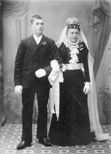 Bildtext: Henrik, Lisen, Walter Wanda Kompletterande bildsynpunkt: Makarna Henrik Sättlin (1872-1952) och Lisen Holmin (1873-1950): Barnen Valter född 1895, Wanda Kathrina, 1896-1901. Systern född 1901 döptes till Vanda, men alltså ej med på denna bild. Sistnämnda enligt en teori via en inkommen bildsynpunkt