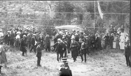 Bildtext: Möjligen frikyrkomusikanter. Osäkra namnangivelser fv: Jakob Svensson, ”Olken”, Eva Malmberg-Nordell, Margareta Vasberg-Eriksson, Lena Brant-Olsson, ?, Gustav Vasberg, Vasberg. Platsen är möjligen Elim-kapellet. Inkommen bildsynpunkt: Lite spekulationer kring bilden: mannen till vänster ser ut att kunna vara: Jakob Johan Svensson (2S10) 1855-1938 från Njöte s2 Njutånger. Bonde i Sätra s1 Enånger. Kanske mannen till vänster är hans broder: Pehr Olof Svensson?? 1851-1900 även han bonde i Sätra och gift med Karin Brolin från Sätra 2. Texten till bilden säger ju tvärt om att den vänstra är Jakob så antagligen är det så då.