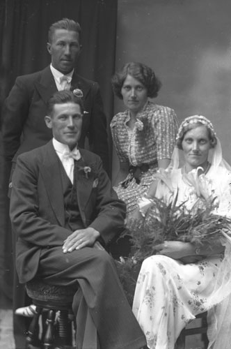 Bildtext: Brita Kjellins 70-årsfirande i Vedmora, Enånger. Främre raden fr.v. Erik Norin, Brita-Stina Norin, okänd, Per Norin, okänd, Sven Kjellin, Olov Kjellin, Brita Kjellin, Erik Norin och Lars Brolin. Andra raden; Bricken Mickelsson, Marta Olsson, Evert Norin(bakom Marta), Sally Norin, okänd, Kristina Frisk, Clara Kjellin, Bricken Andersson, Lars Johan Kjellin, Ingrid Kjellin, Marta Norin, Kristina Svedlund och Lars Erik Svedlund. Tredje raden; Selma Norin, ....? Gustafsson, ....? Gustafsson, August Frisk, okänd, Sven Andersson(med skägg), Anna Andersson och Erik Olof Svedlund. Fjärde raden; okänd, okänd, okänd, okänd, Ida Frisk, Karin Svedlund och okänd.