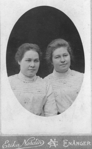 Bildtext: Fv Anna Holmin (g Brolin), en syster i mitten, samt ”Mosch-Anna”, Alma Holmin f 1883