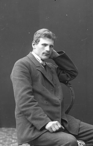 Sökord: Motivkategori:porträtt, man Id:13655 Fotograf: Erika Nordin Fotoår: okänt Bildnummer: en-ae-163 Förening: Enångers hembygdsförening Land: se Motivplats: Gävleborg, Enånger Teknik: Inskannad glasplåt 9x12 cm Rättighet: Enångers hembygdsförening Originalplats: (visas ej publikt)