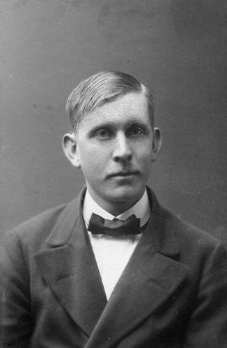 Bildtext: Fredrik, Klara och Valter Persson. Fredrik född 1879 i Berge, Norrala. Gift 1909 med Klara Åström f 1883 i Tosätter, Enånger. Deras son Valter Persson f 1909. De bodde i Berge, Norrala när Valter föddes och på Altorp när Viola och Astrid föddes, sedan flyttade de till Söderhamn.