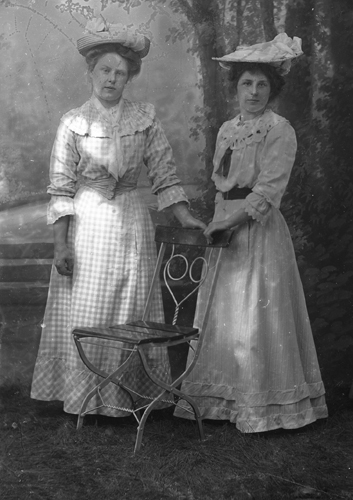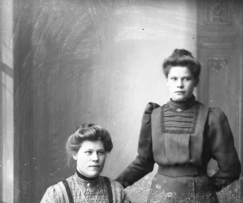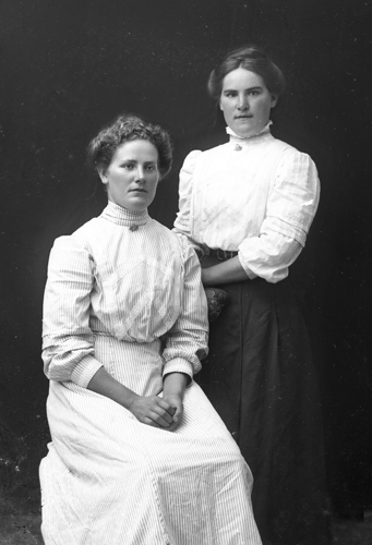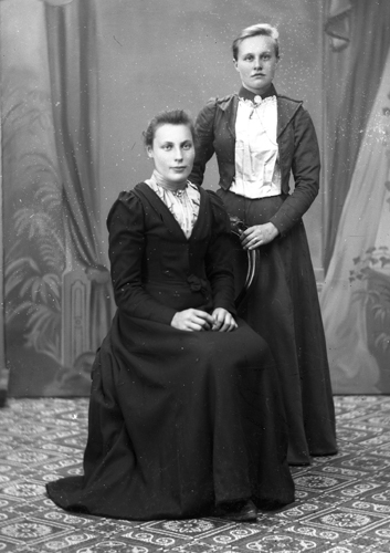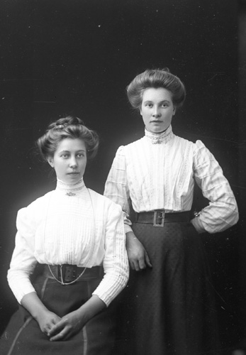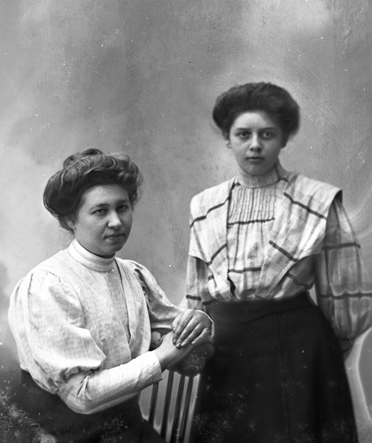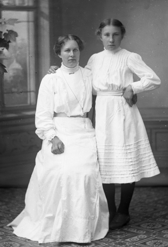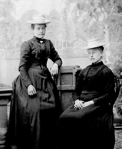 Bildtext: två kvinnor. Elvira Englin, gift Högblom, t h. Den andra kvinnan okänd