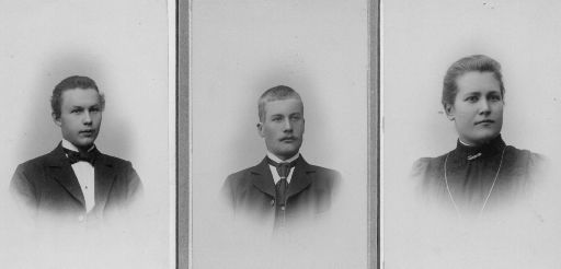 Bildtext: Kollage på tre visitkort med okända personer. Uppgifter inväntas