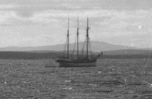 Bildtext: Vy mot Enångers kyrka från sydväst. Kustvägen syns i bild, Borins gård till höger, Åkres ägor till vänster, framför kyrkan en gård som revs i slutet av 1910-talet, varefter frikyrka uppfördes på samma ställe, som senare blev Bygdegården. Barnen som svagt skymtar på bild verkar vara Tekla och Signe Nordin