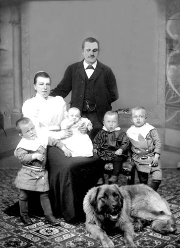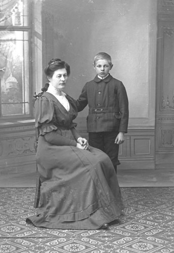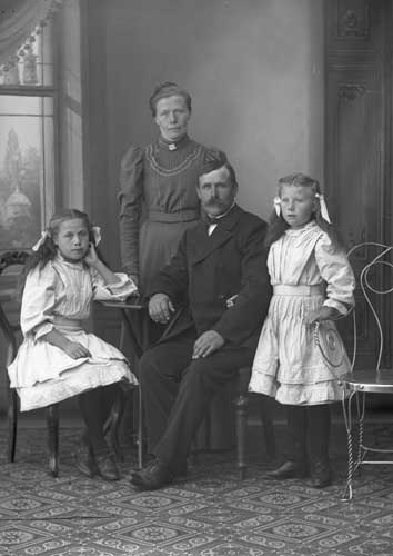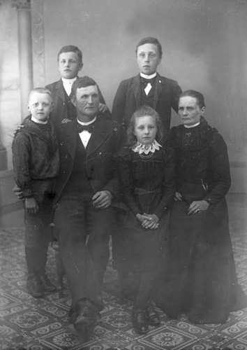 Bildtext: Paret har anknytning till Bölan o kvinnan sannolikt till Gåste. En mer eller mindre kvalificerad gissning är att det rör sig om J. O. & Karin Enqvist med barn i Hökberg. Inkommen bildsynpunkt meddelar: Min farmor Signe (gift Lidén) är flickan på bilden. Hon och hennes bröder var barnkull nr 2 eftersom de 4 första barnen dog.