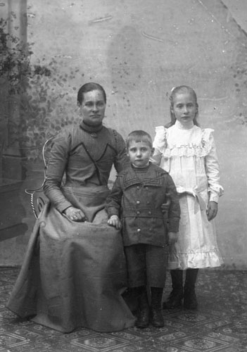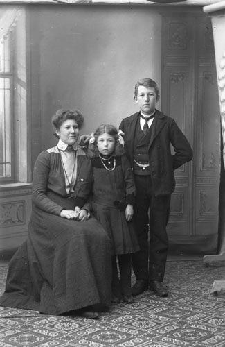 Uppgiftslämnare: Katarina Lidén. Ytterligare bildsynpunkt: Det är nog helt riktigt! Flickan i mitten är Signe Enqvist, min farmor, sedermera gift med Karl Lidén från Norsjö, Västerbotten, folkskollärare och organist.