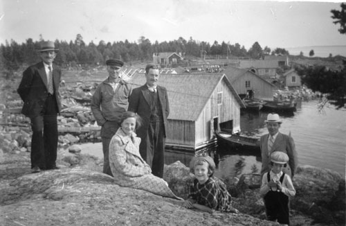 Sökord: gruppbild, fiskeläge, båtar, sjöbodar, byggnader Motivkategori:gruppfoto Id:7520 Fotograf: okänt Fotoår: 1935-1940 Bildnummer: lz-priv-11 Förening: Enångers hembygdsförening Land: SE Motivplats: Gävleborg, Enånger, Sörön Teknik: Inskannat foto Rättighet: privat Originalplats: (visas ej publikt)