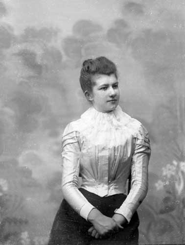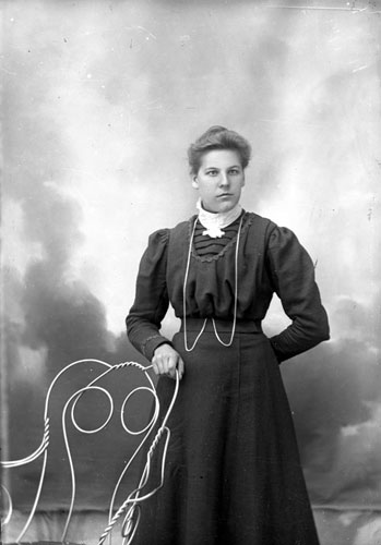 Sökord: Motivkategori:porträtt, kvinnor Id:979 Fotograf: Erika Nordin Fotoår: okänt Bildnummer: en-c-108 Förening: Enångers Hembygdsförening Land: SE Motivplats: Gävleborg, Enånger Teknik: inskannad glasplåt 8x12 Rättighet: Enångers hembygdsförening Originalplats: (visas ej publikt)