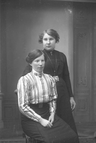 Bildtext: Stående: Alma Strömgren, gift med Henning Engberg. Den andra okänd