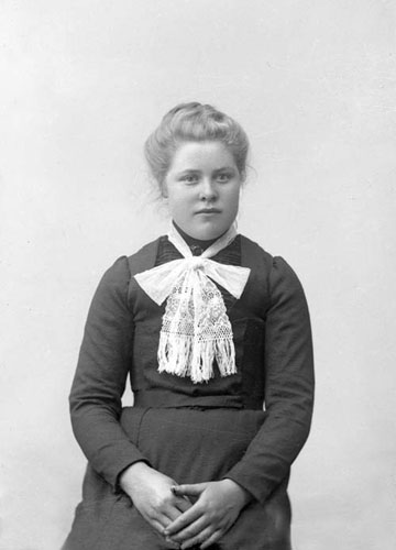 Sökord: Motivkategori:porträtt, kvinna Id:1022 Fotograf: Erika Nordin Fotoår: 1910-tal? Bildnummer: en-g-185 Förening: Enångers Hembygdsförening Land: SE Motivplats: Gävleborg, Enånger Teknik: inskannad glasplåt 9x12 Rättighet: Enångers hembygdsförening Originalplats: (visas ej publikt)