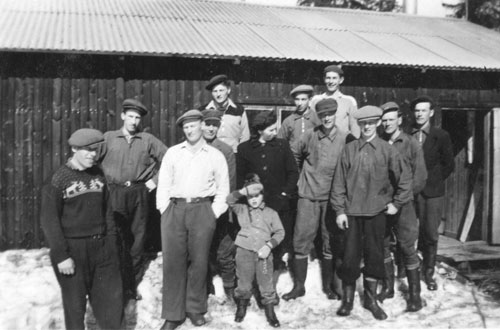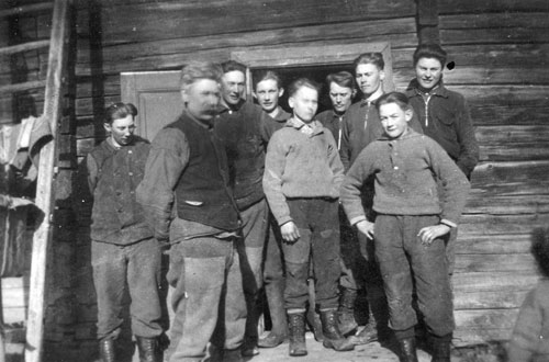 Bildtext: Från en bröllopsfest i Holmen 10/7 1910: Övre rad fv: H E Eriksson, Otto Nilsson, Gustaf Pettersson, Helmer Nilsson, Alfred Bergström, Alfred Norling, Johan Enkvist. Harald Nilsson, Andra raden: Kristina Eriksson, Stina Brosten, Olsen, Anna Melin, Klas Jungman, Gustaf Lindkvist, Anna Svensson, Per Olov Wikström, Frida Nilsson, Maja Olsson, (Olsson), Kristina Rosling, Hulda Pettersson, Cille Enbom, Anna Nilsson, Anna-Lisa Svedin, Vendla Strandberg, Kristina Östlin. Sittande: Brosten, Fanny Jungman, Lovisa Ljungman, Fritjof & Lotta Jungman, Alma Olsson, Kristina Wasberg. Barnen: Edit Ljungman, Elna Olsson, Elin Jungman, Bertil Olsson, Anna Ljungman