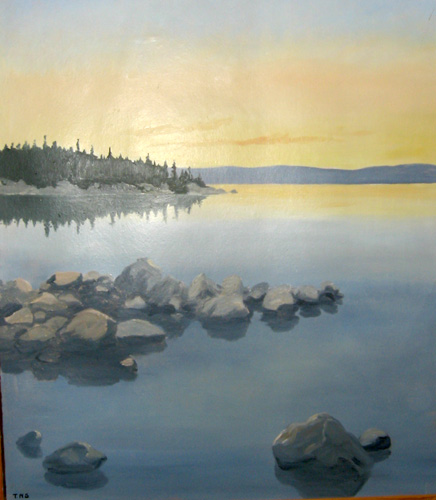 Sökord: insjö, fäbodvallar, natur, skogsmark, vyer Motivkategori:konstverk Id:12880 Fotograf: Fotoår: målad troligen på 1920-talet Bildnummer: karv-538 Förening: Enångers hembygdsförening Land: se Motivplats: Gävleborg, Enånger, Känna Teknik: Digitalt foto av målning Rättighet: privat Originalplats: (visas ej publikt)