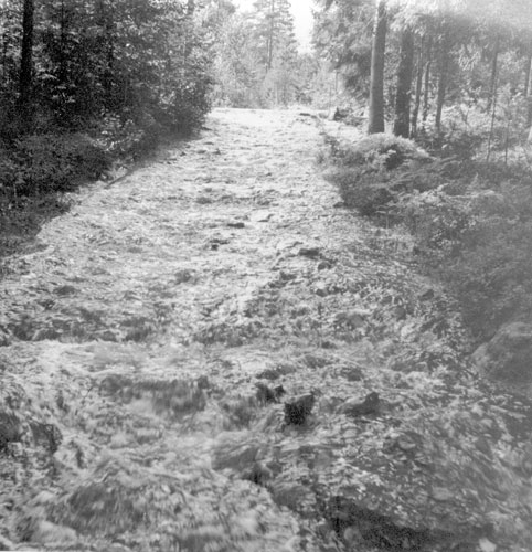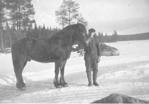 Bildtext: På skidor vid Kännavallen vintern 1930/31 Från höger Elsa Lundblad, Eric Lundblad och okänd flicka