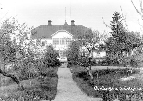 Enångers prästgård sedd från öster, (förlaga till vykort?) G:la prästgården skymtar till höger