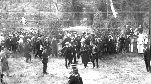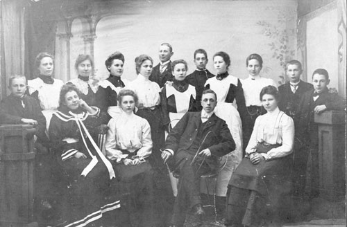 Bildtext: Enångers västra jaktlag. Fv överst: Alfred Andersson, Bertil Eriksson, Albin Matsson, Johan Enbom, Erik Karlsson, Axel Larsson, Adolf Henriksson, Viktor Lövgren, Gösta Falk, Vilhelm Borin, Helmer Nilsson, Per Bodin. Nedre rad: Gottfrid Henriksson, Einar Westberg, Abdon Karlsson, Per Enroth, Axel Eriksson