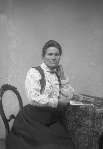 Sökord: Motivkategori:porträtt, kvinnor Id:1130 Fotograf: Erika Nordin Fotoår: okänt Bildnummer: en-h-50 Förening: Enångers Hembygdsförening Land: SE Motivplats: Gävleborg, Enånger Teknik: inskannad glasplåt 12x16 Rättighet: Enångers hembygdsförening Originalplats: (visas ej publikt)