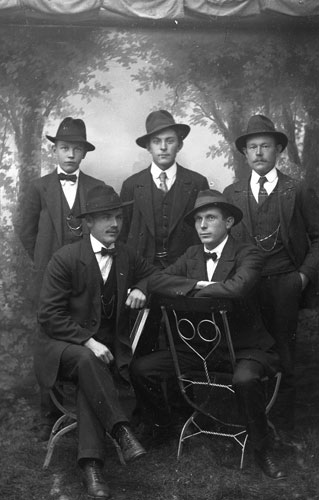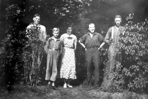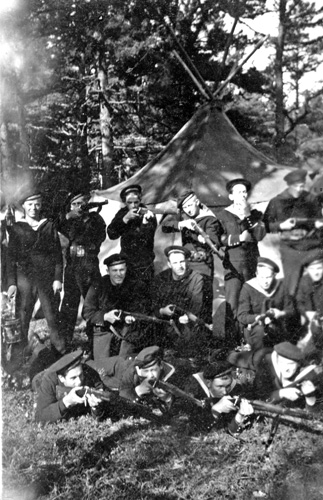 Bildtext: Från Söröns fiskeläge. Anton Nilsson, Johan Lindfors, Hilda och Leon Östberg, Kerstin och Bruno med sin pappa Anders Svensson