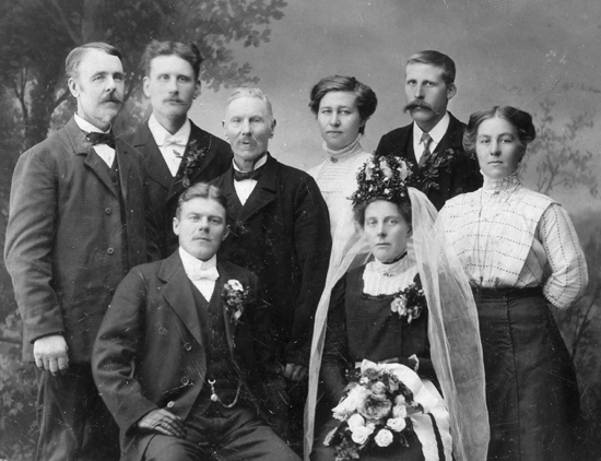 Bildtext: Brudparet är Anders Josef Bodinsson (1898-1985) och Anna Henriksson (1898-1978). De gifte sig 12 oktober 1924. På vardera sida om brudparet sitter deras föräldrar: Henrik Mårtensson / Anna Jonsdotter och Brita Larsdotter / Lars Johan Bodinsson. På bilden syns även bl a Eliott Burman, Alfred Nordin, Arvid Nordin, Edit Bodinsson, Per Martin och Mathilda Åkerblom, Märta Henriksson, Erik Wiberg. Namn den som lämnar informationen: Therese Hellgren sökord: brudpar, gruppbild, män, kvinnor, byggnad motivkategori: bröllop id:16525 Fotograf: okänt fotoår: 1924 bildnummer: ceda-36 förening: Enångers hembygdsförening land: SE motivplats: Gävleborg, Enånger? teknik: inskannat foto rättighet:(föreningen ovan om ej annat anges.) privat originalplats: (visas ej publikt) släktboken: publiceras: ja säljas: ja tidigare nr: samling: Inga Forslin skick: ganska bra reg av: he reg datum: 2025-04-30/2025-05-14 |