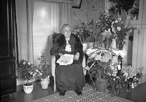 Bildtext: Fru Nordvall, Trogsta, Forsa. Emma Helena Nordvall var barnmorska i Forsa och Johan Persson Nordvall var skomakare.