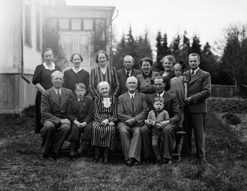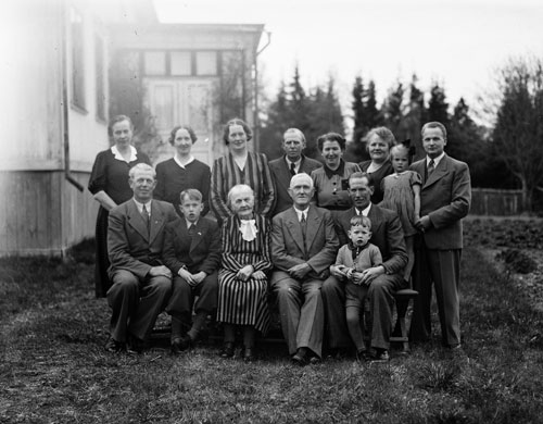 Bildtext: Kvinnliga elever vid Forsa Folkhögskola 1948. Märtha Olsson, Utnäs berättar: Sommarkursen 1948. Under 16 veckor fick vi flickor undervisning i matlagning, servering, trädgård, vävning, växtfärgning, handarbete, svensk historia, litteratur. Var 14:e dag anordnades lekafton ibland med ringlekar men även intressanta besök, bl. a. besök av Delsbostintan Ida Gawell Blumenthal. Lärare Ingeborg Sundin, Barbro Östlund, Rektor Israel Jonzon.