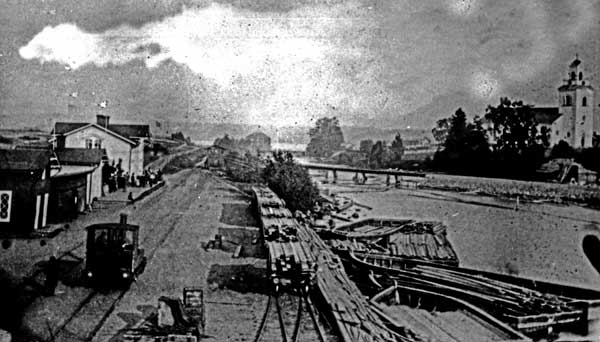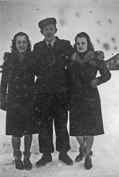 Bildtext: Lastbil med virke i Tövsättersskogen. Bakom står en Ford Anglia. En person som var med var Bo Holmqvist.