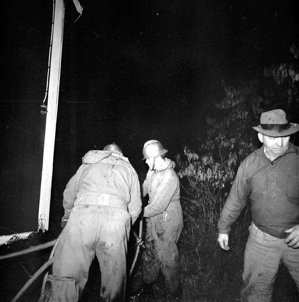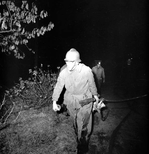 Sökord: eldsvåda, brandmän Motivkategori:händelse Id:16129 Fotograf: PH Lindh Fotoår: Troligen 1962 Bildnummer: PH084-106 Förening: Forsa Sockens Hembygdsförening Land: SE Motivplats: Teknik: Inskannat negativ 6 x 6 cm s/v Rättighet: Forsa Sockens Hembygdsförening Originalplats: (visas ej publikt)