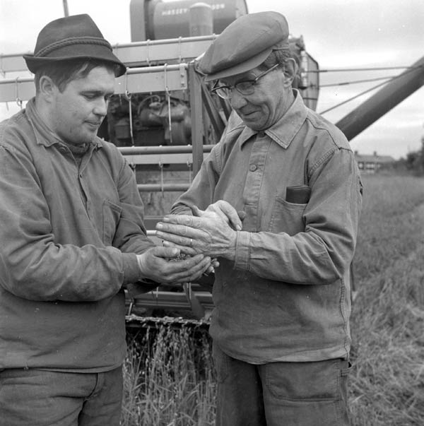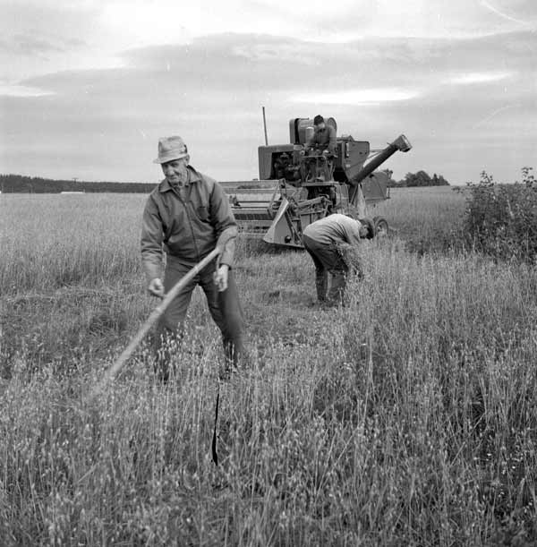 Sökord: skördetröska, säd Motivkategori:lantbruk Id:16836 Fotograf: PH Lindh Fotoår: Troligen 1966 Bildnummer: PH114-021 Förening: Forsa Sockens Hembygdsförening Land: SE Motivplats: Gävleborg,