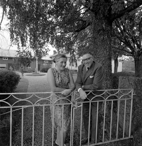 Bildtext: Riksdagsmannen John Eriksson samt hustru framför sitt vackra hem i Bäckmora