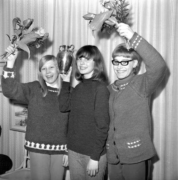 Bildtext: Premiärtur med ny mjölkhämtningsmetod 1969. Mjölkkrukorna byts ut mot mjölktankar. På bilden vid Klockar-Jonas (Jonas Nilssons) mjölkrum i Hedsta. Ragnar Flodin, Hans Åke Persson, instruktör från Sundsvalls mejeri samt bonden Klockar-Jonas