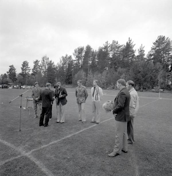 Bildtext: Studiebesök hos Matts Olsson Utnäs. Bla syns Klockar-Jonas Nilsson Hedsta, Olle Norell Gryttja Hälsingtuna och Göran Högström Vattlång.