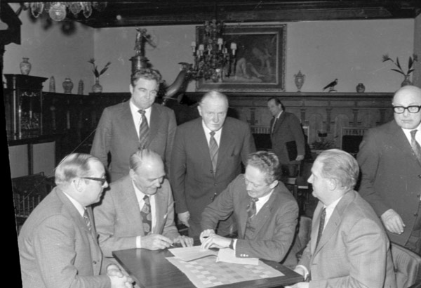 Bildtext: Sammanträde med nybildade NNP (Nedre Norrlands Producentförening). Till vänster Rubin Olsson Fränö