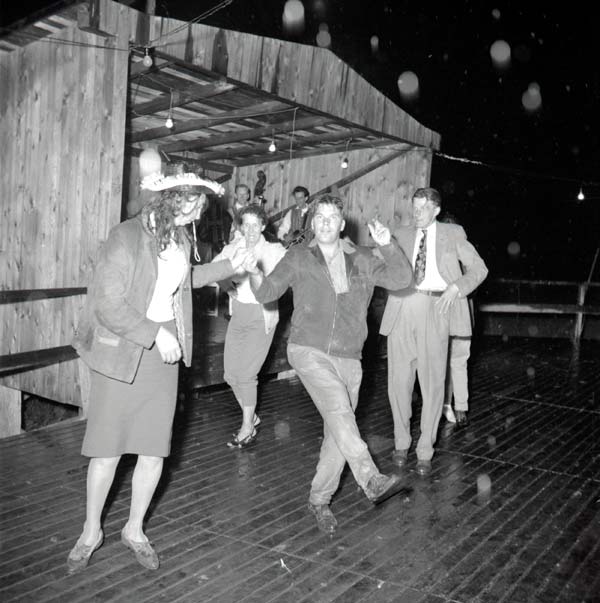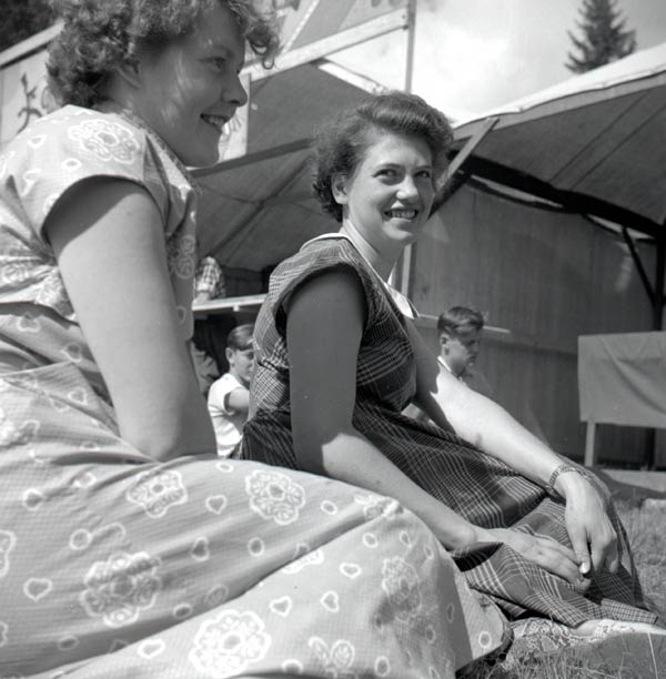 Bildtext: Förmodligen äldre bild till ett reportage om festplatser. Till höger Valborg Lindh