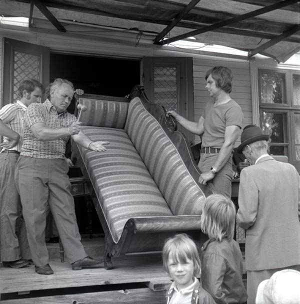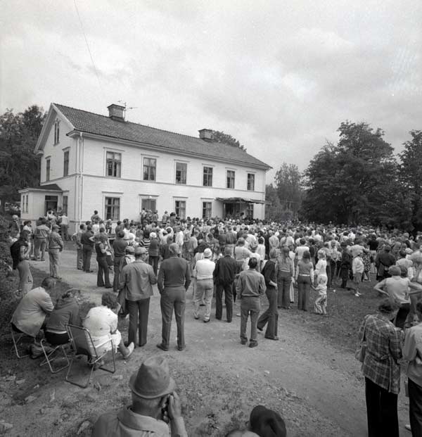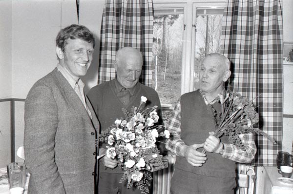 Bildtext: Till vänster Astor Andersson och till höger min morfar Bryngel Bryngelsson. Astors mamma, Frida Andersson, var syster med Bryngels fru, Julia Bryngelsson. En gissning är att fotot togs vid en avtackning på Vägverket, där både Astor och Bryngel arbetade. /Thomas Norrman (barnbarn till Bryngel). I mitten är Ture Jonsson i Sunnanbäck. Arbetade vid vägverket. /Elving Jonsson (son till Ture)