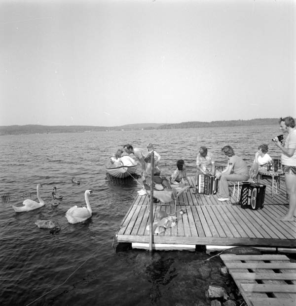 Sökord: brygga, svanar, eka, dragspel, kamera Motivkategori:personer Id:18494 Fotograf: PH Lindh Fotoår: Troligen 1975 Bildnummer: PH179-012 Förening: Forsa Sockens Hembygdsförening Land: SE Motivplats: Teknik: Inskannat negativ 6 x 6 cm s/v Rättighet: Forsa Sockens Hembygdsförening Originalplats: (visas ej publikt)