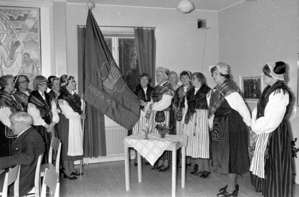 Bildtext: Främre rader tredje personen kan vara Åke Englund Näsviken. I mitten bakom första rader från vänster: Lena Lindh och Veronika Knittel. Damen närmast är Anny Mikaelsson.