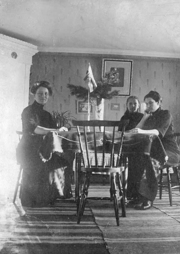 Karolina Gustafsdotter och Eleonora Gustafsdotter med dottern Kristina Gustafsson. Här i den av Eleonora hyrda övervåningen hos Jankens i Smedsgården