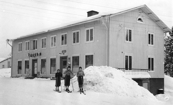 Forsa telefonväxel var inhyst i Konsum-huset i Sörforsa. Okända skidåkare