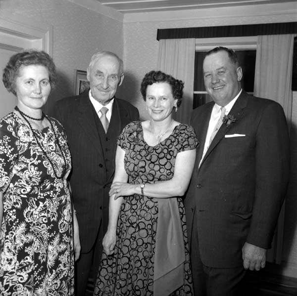 Bildtext: Året är 1959. Kortet taget i samband med att Jonas Nilsson och hans hustru Mildred besökte Näsviken. Jonas var son till Nils Nilsson (Nisse på täkta). Jonas hade utvandrat till Canada 1927. Personerna är från vänster. Anna Nilsson, Nils Nilsson, Mildred och Jonas Nilsson./Åke Nilsson
