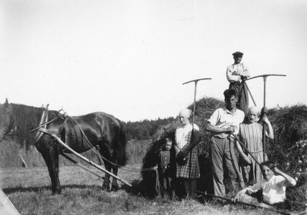 Sökord: höbärgning, kratta, lantbruk Motivkategori:hästar och folk Id:20150 Fotograf: Okänd Fotoår: Säkert 1928 Bildnummer: LAF-100 Förening: Forsa Sockens Hembygdsförening Land: SE Motivplats: Teknik: Inskannad påsiktsbild, 48-bitars färg, 800 dpi, 7,5 X 5,5 cm Rättighet: Forsa Sockens Hembygdsförening Originalplats: (visas ej publikt)