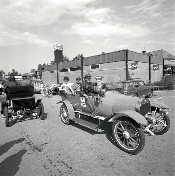 Bildtext: Salutorget med bryggeriet i bakgrunden. Text på skylten: Dellenrallyt för veteranbilar.