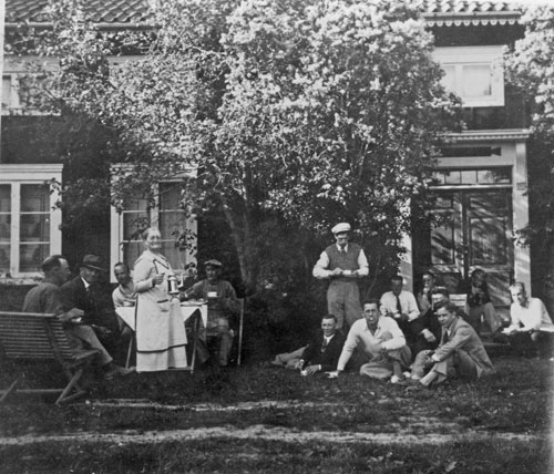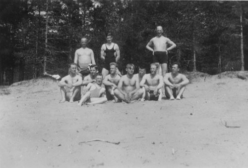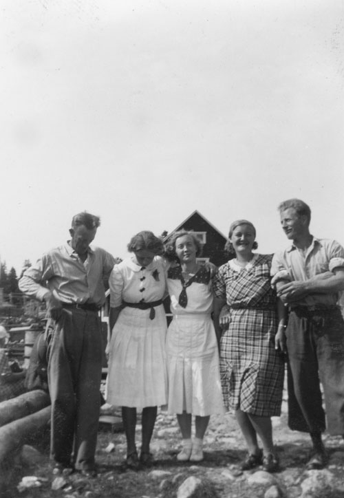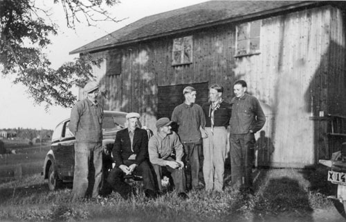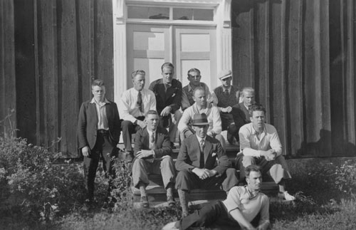 Bildtext: Från vänster: Okänd ,Verner Enström, okänd, Helmer Bengtsson, okänd och Anton Larsson.