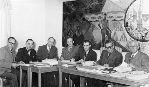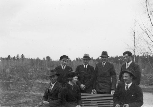 Bildtext: Forsa taxeringsnämnd, från vänster: Martin Dahlberg, Heribert Lindberg, Anders Larsson, Johan Persson (taxeringsnämndens ordförande), Bror Fors, Karl Sundin, P. J. Grundström från Björkmo.