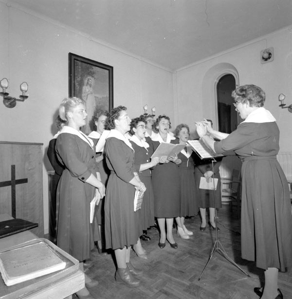 Forsa Damkör. Dirigent Lisbet Bergman. Längst till vänster Sally Eklind, född Hermansson, Trogsta. Till höger om henne Ester Andersson, Matnäs.