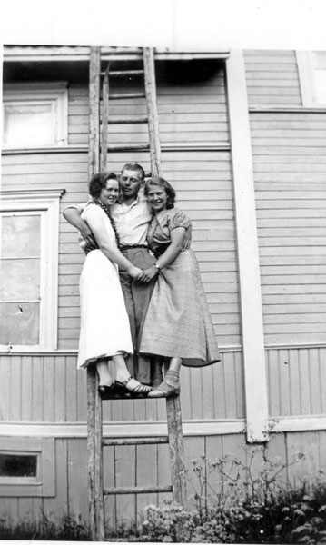 Sittande från vänster: Per Nilsson (PostPelle), Sara (Petters piga från Härjedalen), Nisse Eriksson. Längst bak från vänster: Lars Nilssson, Linnéa Mattsson (Månsson), Hilding PH Lindh, Karin Andersson (Fredlund) och Martin Bergström Tåsta (Ludvigs son)